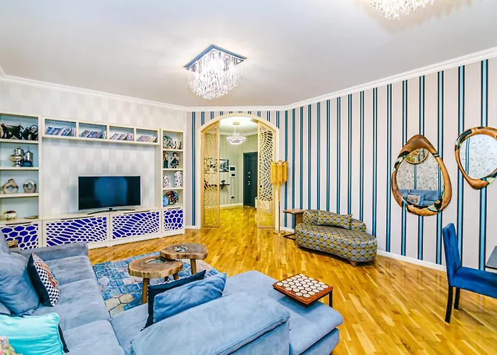 The spacious Luxury Apartment Nizami Street Baku is located only 1.9 km from the Monument to Lovers and Cats and about a 20-minute walk from the shopping mall "Park Bulvar Baku". Staying at this apartment, you can visit the historic Ajdarbey Mosque, which is 750 metres away, and relax on a terrace with outdoor dining areas.